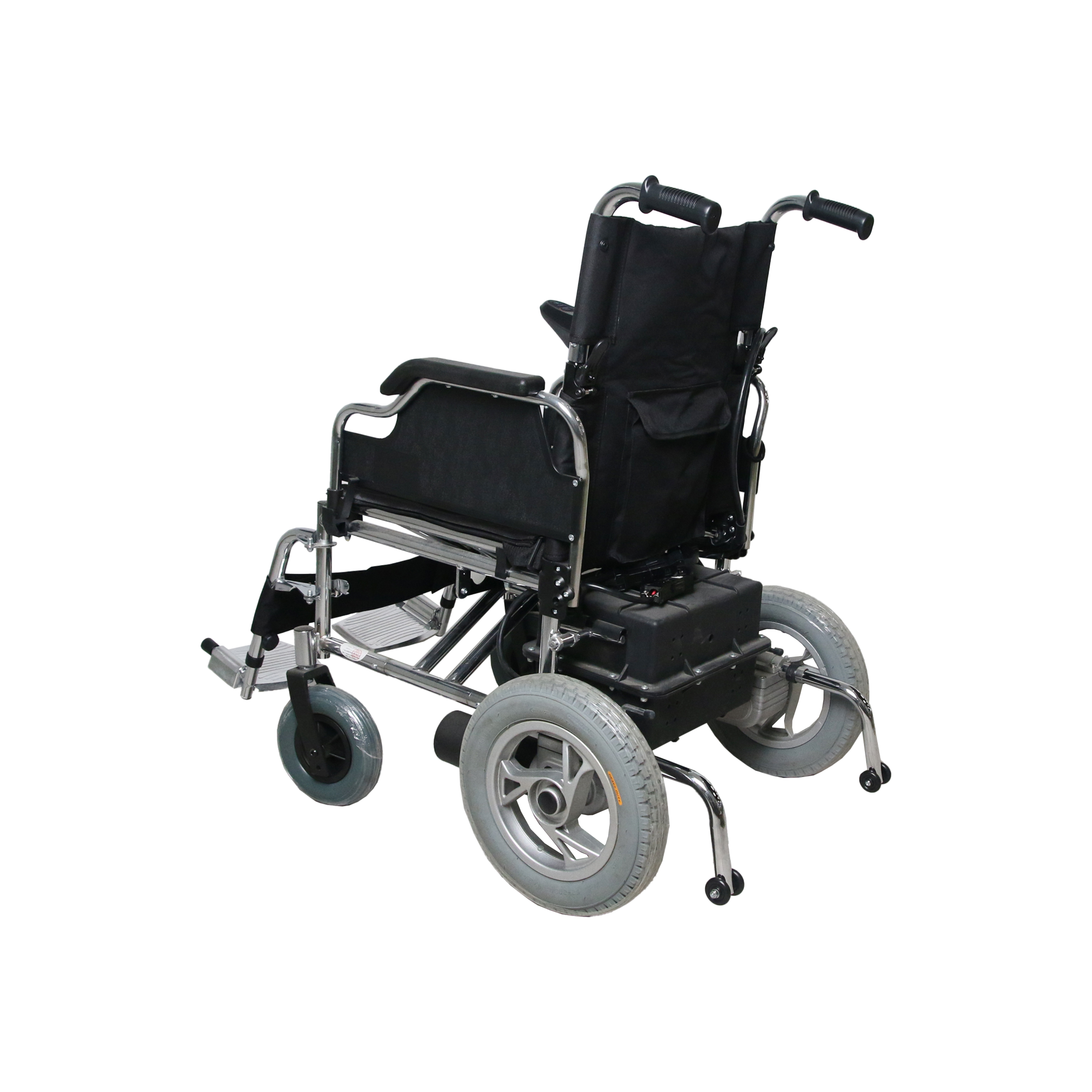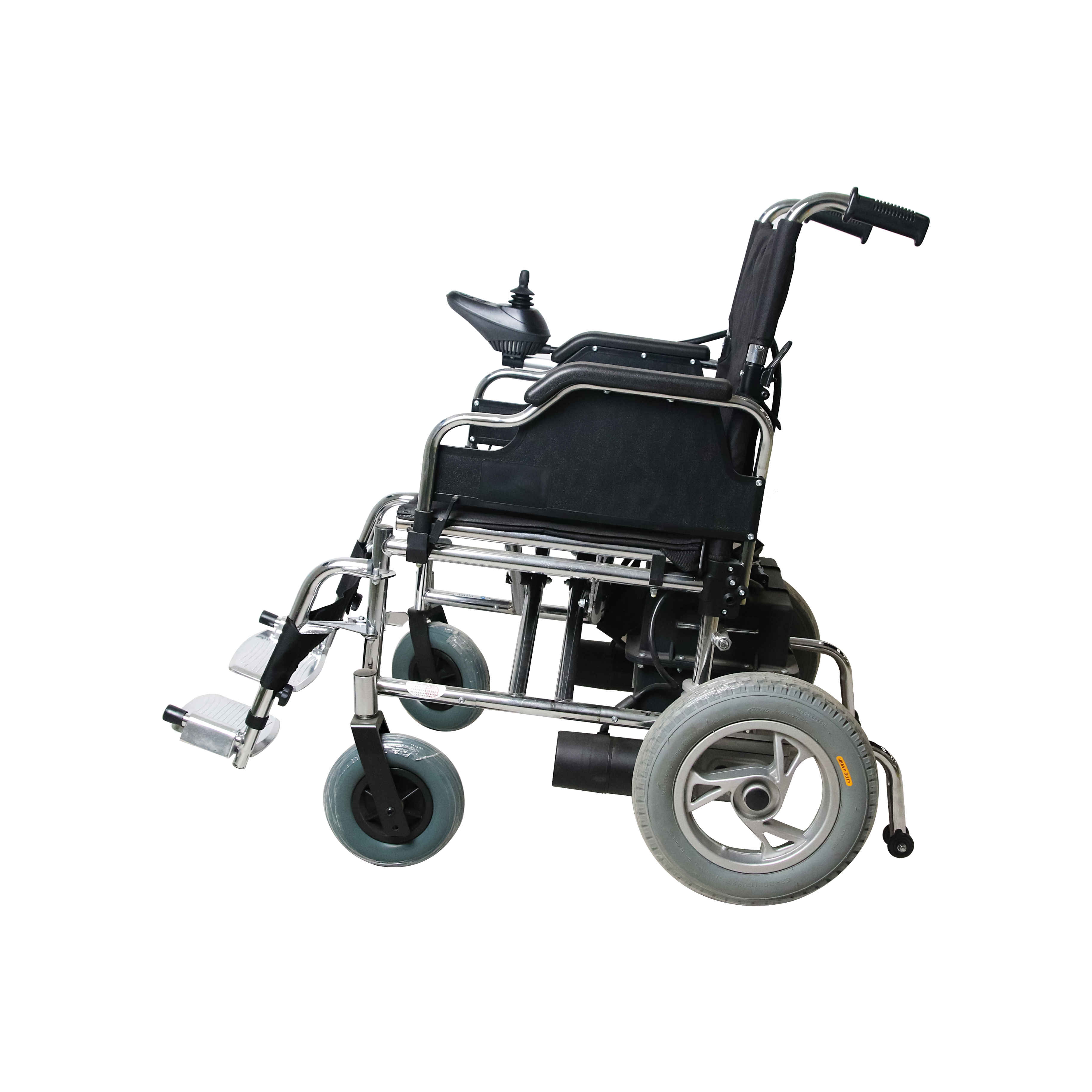 3. 电动轮椅(DH01103)由车架、工字、座垫、靠背垫、快拆脚踏、防倒轮、8寸发泡前轮、12寸PU后轮、200W有刷电机、12V/28AH铅酸电池、遥控器、驱动器等部分组成。