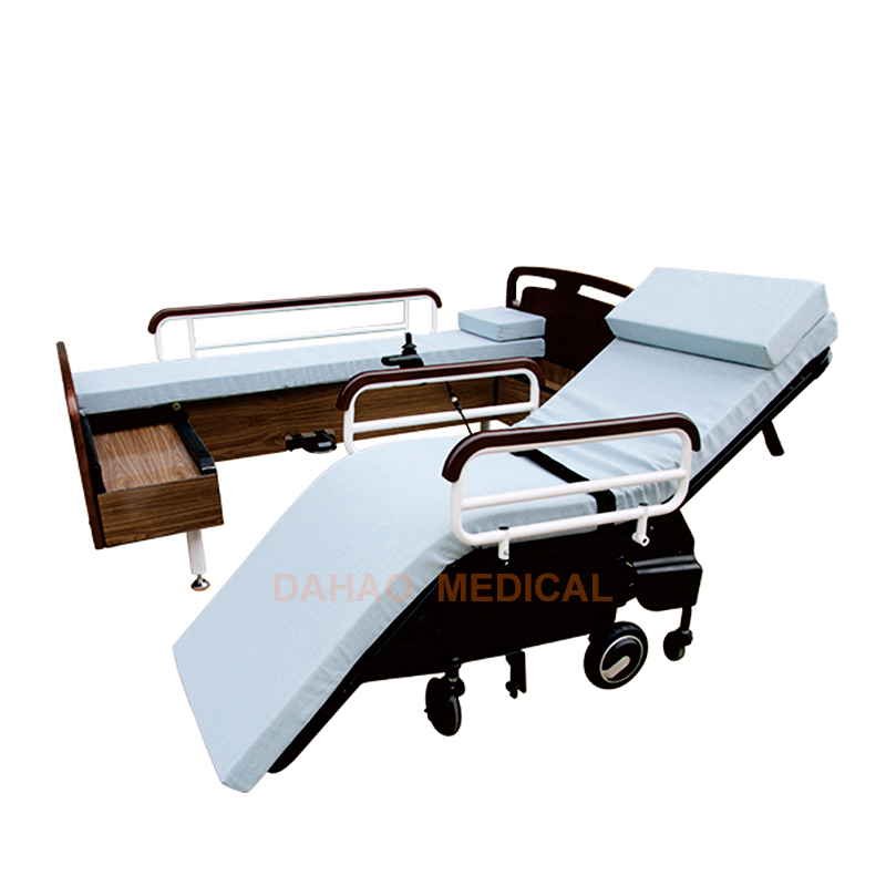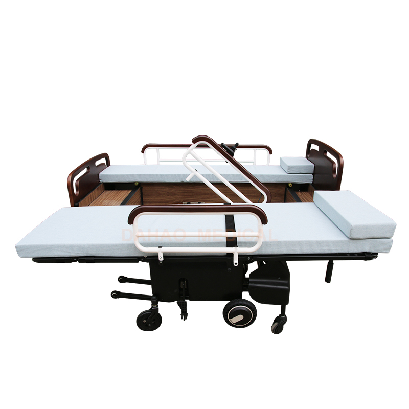 2.轮椅与床可分离、平躺功能,分离后靠背升起形成轮椅状态,方便用户使用。