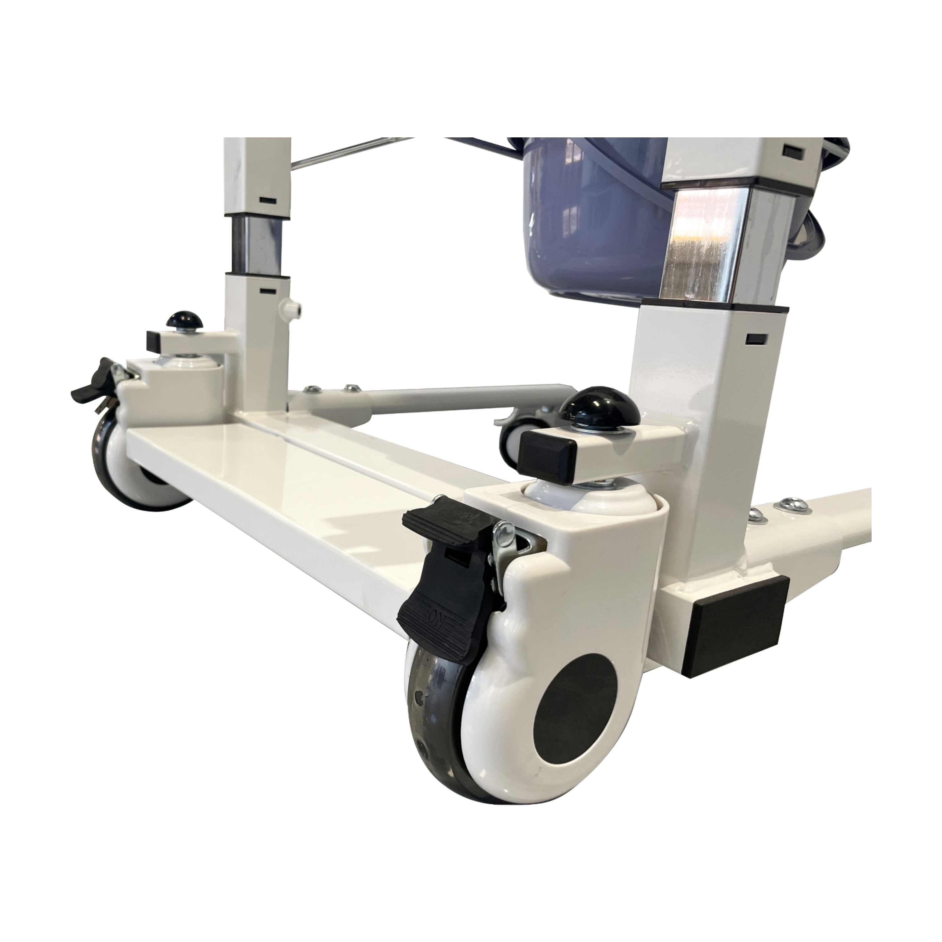 5.前置定向5寸带刹轮,操作者轻松刹车,后置万向3寸带刹轮;